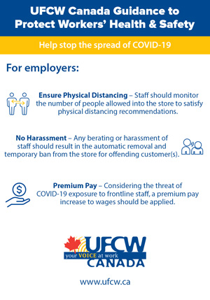 But in working through the pandemic, members are understandably concerned about their health, and they need employers to take action to protect workers’ health and safety and help stop the spread of COVID-19.