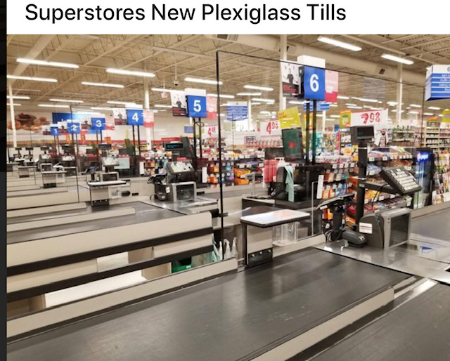 Below are photos of the new plexiglass barriers being installed by Loblaws in Superstore locations: